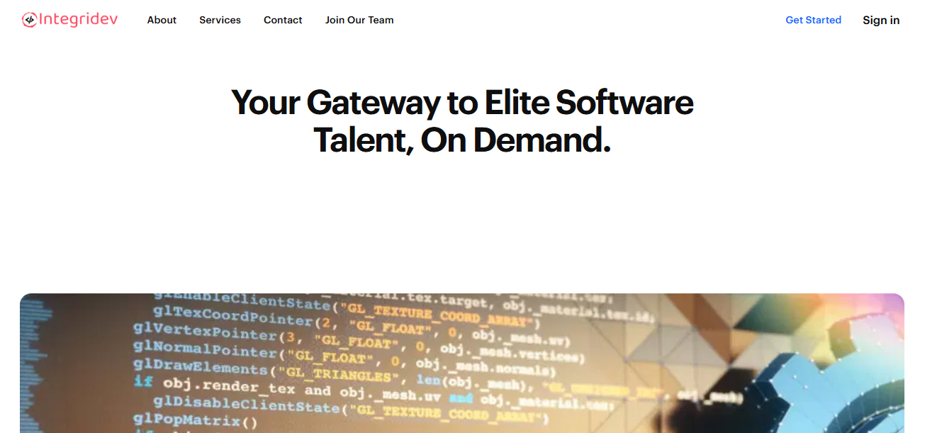 Integridev is a talent-services company that helps businesses access top-tier, vetted software developers on a contract or project basis. Their core offering is to streamline the process of finding and engaging skilled development professionals so that companies can fill technical roles quickly and seamlessly. On their homepage they describe their mission as bridging the gap between businesses and elite software talent, delivering innovation, efficiency and success.